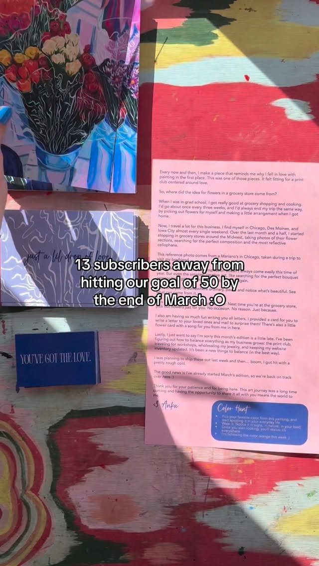 The ANKA Print Club is a monthly art practice centered around color, play, and attention. Each month includes an exclusive print and a gentle creative invitation, something to notice, make, or explore alongside the artwork. There’s no right way to participate. A gift from my studio to your life.
