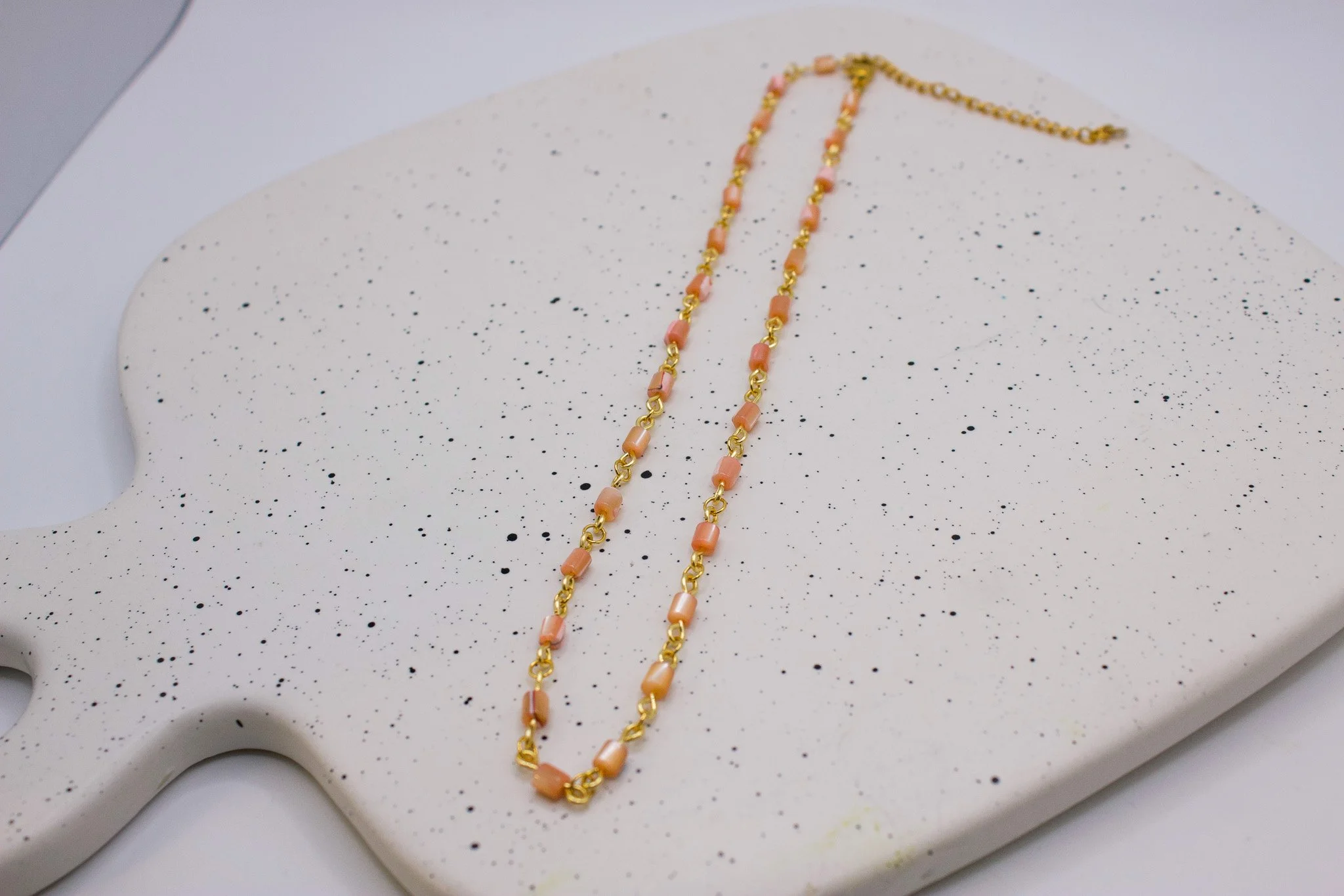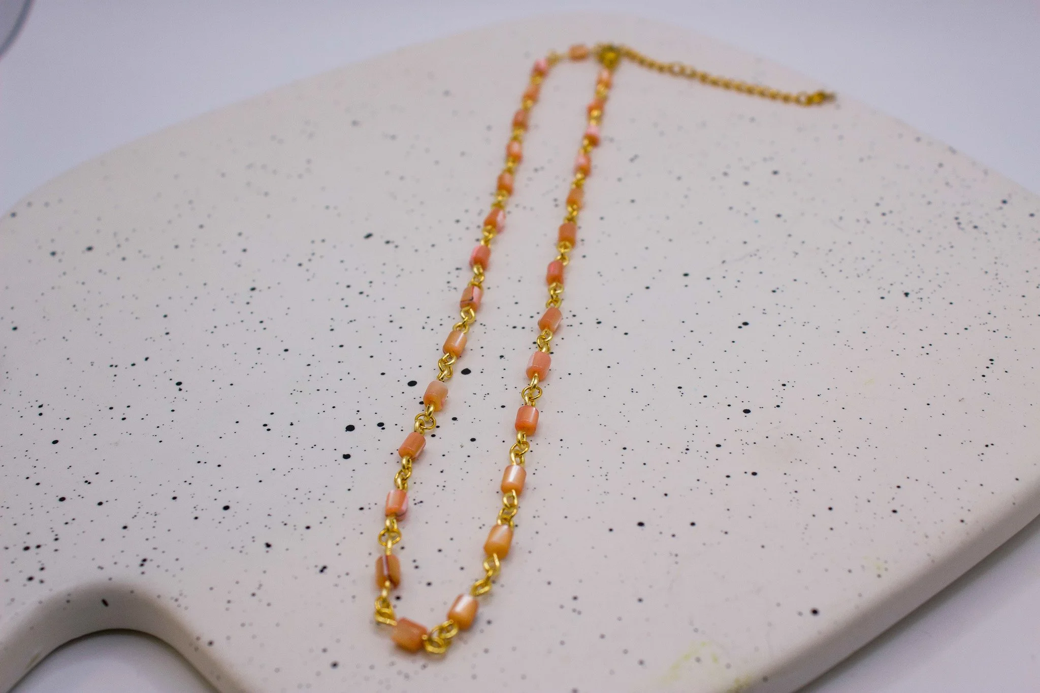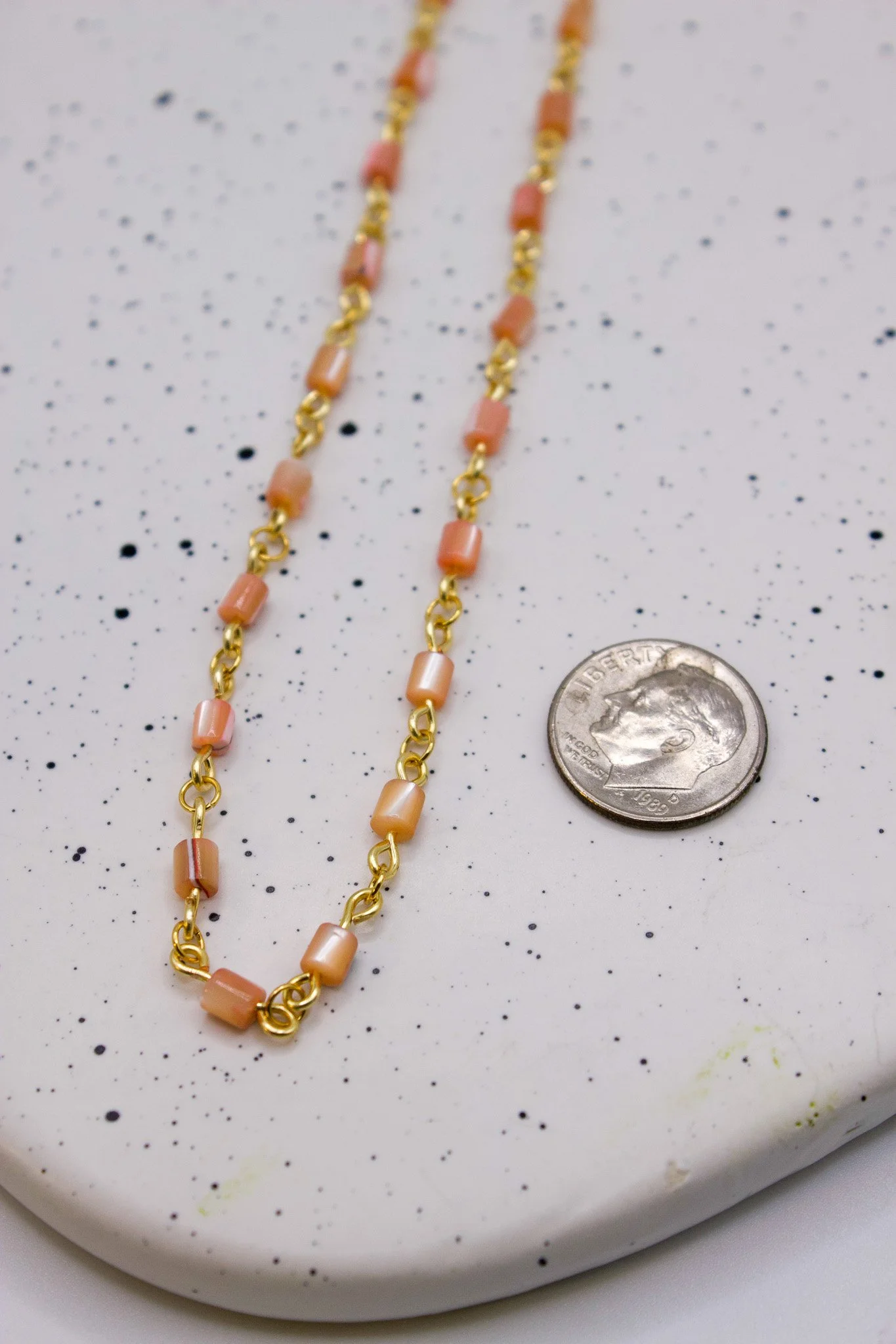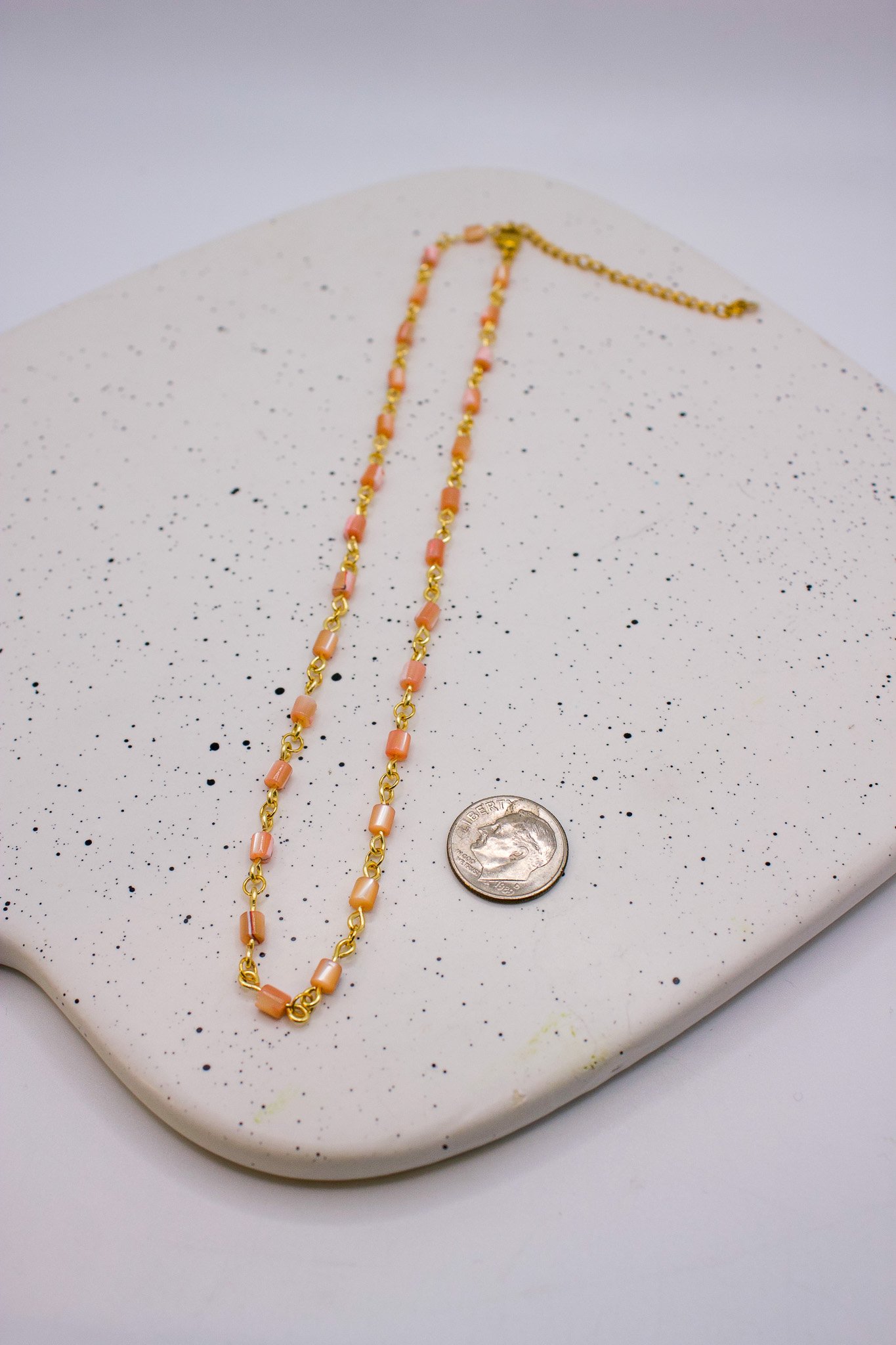 Shop › Warm beaded necklace Image 1 of 5 Image 2 of 5 Image 3 of 5 Image 4 of 5 Image 5 of 5 Warm beaded necklace $25.00 15” in Length with 2” adjuster Add To Cart Added! 15” in Length with 2” adjuster Reviews Reviewer Name Review Date Star Rating Description Posted on Etsy Product Show More You Might Also Like Light pink necklace $25.00 Flower Necklace $25.00 Sold Out cool tone necklace $25.00 Evil Eye necklace $25.00 Purple Necklace $25.00